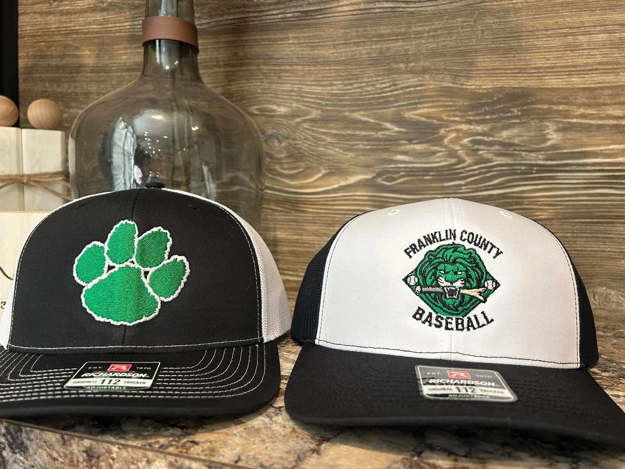 Show your team spirit this season with our custom-embroidered Franklin County Baseball hats, available now.